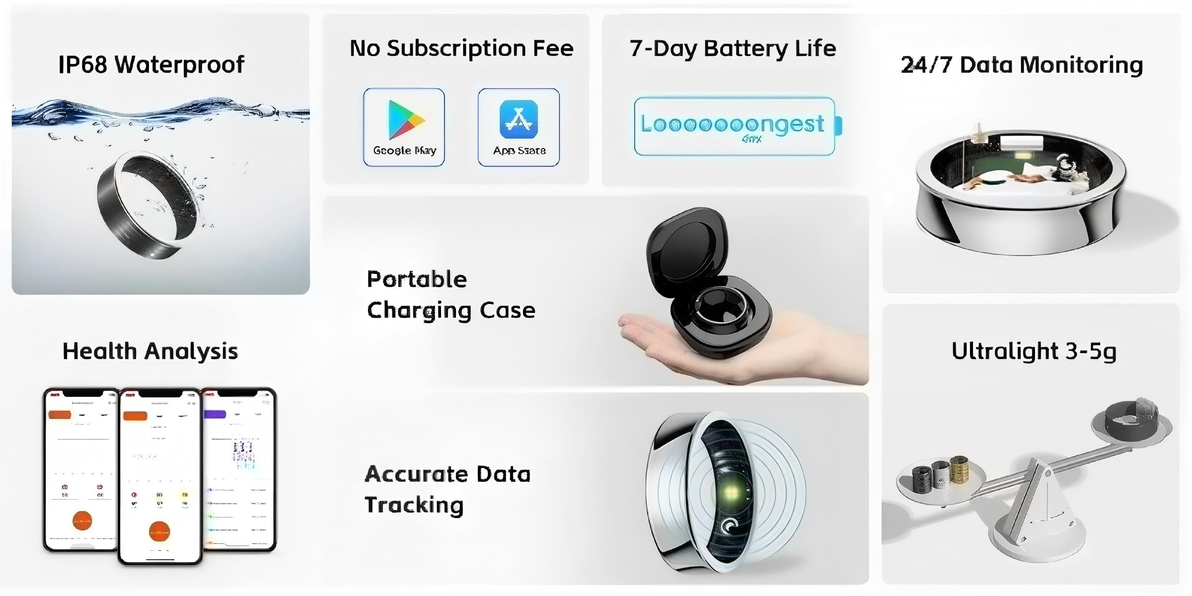The smart ring is made of lightweight, skin-friendly and high-strength titanium, ensuring excellent workmanship and durability.Non-man-made damages within one year, we provide freeNEWring.