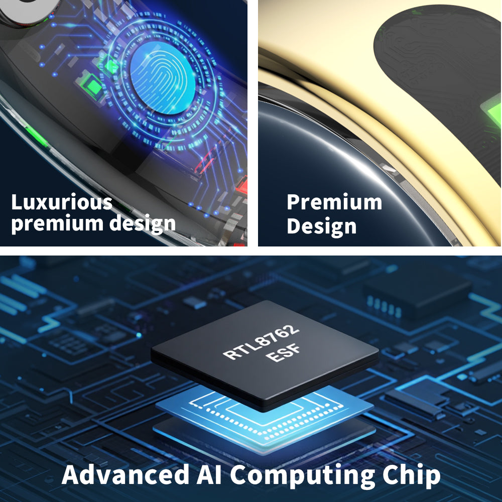 A discreet touch zone and starlike indicator light are hidden within the band, enabling music, video, and notifications to respond to a single gentle tap—quiet, yet always connected.