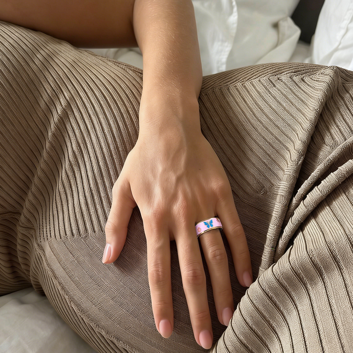 Under the gentle glow of enamel, love is tenderly placed.